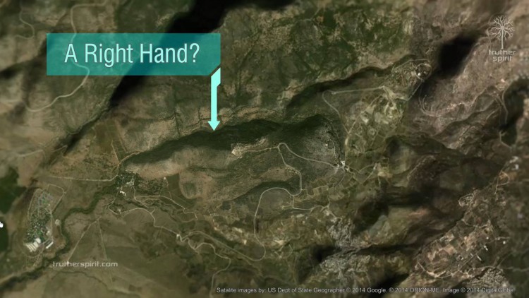 I continued to scan my way directly north to Mount Hermon. It was then that I saw the images that set me on an investigation that continues to this day. At the foothills of the southern tip of Mount Hermon, squeezed between the boarders of Lebanon, Syria and Israel, I found a mountain formation in the shape of a right hand. It depicted a hand being held out level with it’s fingers pointing directly west. Above the hand, I found what looks like a geoglyph of a cow or a bull, and to the left of that I found what could either be a depiction of the chimera Pagan god Pan, or a Ram, depending on how you look at it. Positioning the Sun in Google Earth to sunrise in the East, these images were most visible. At the time of this discovery, I had no idea that there might actually be a connection between the rising Sun and these images formed by the mountain shapes.