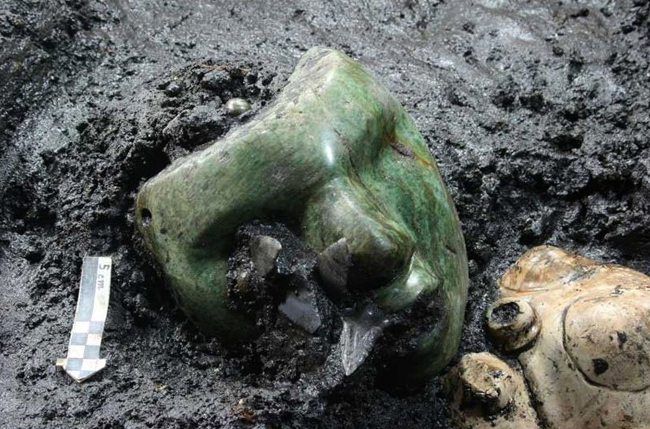 Photo taken of newly discovered Greenstone ‘mask’ in 2012.